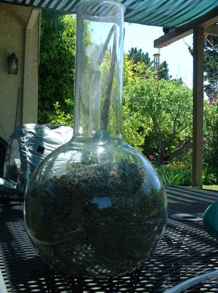 Here you can see the 'Mother Flask' which is the Large Flask Danilla is fitting in one of the tubes that leads steam from the heated water (on the burner) into the Mother Flask which will contain the Lavender flowers.